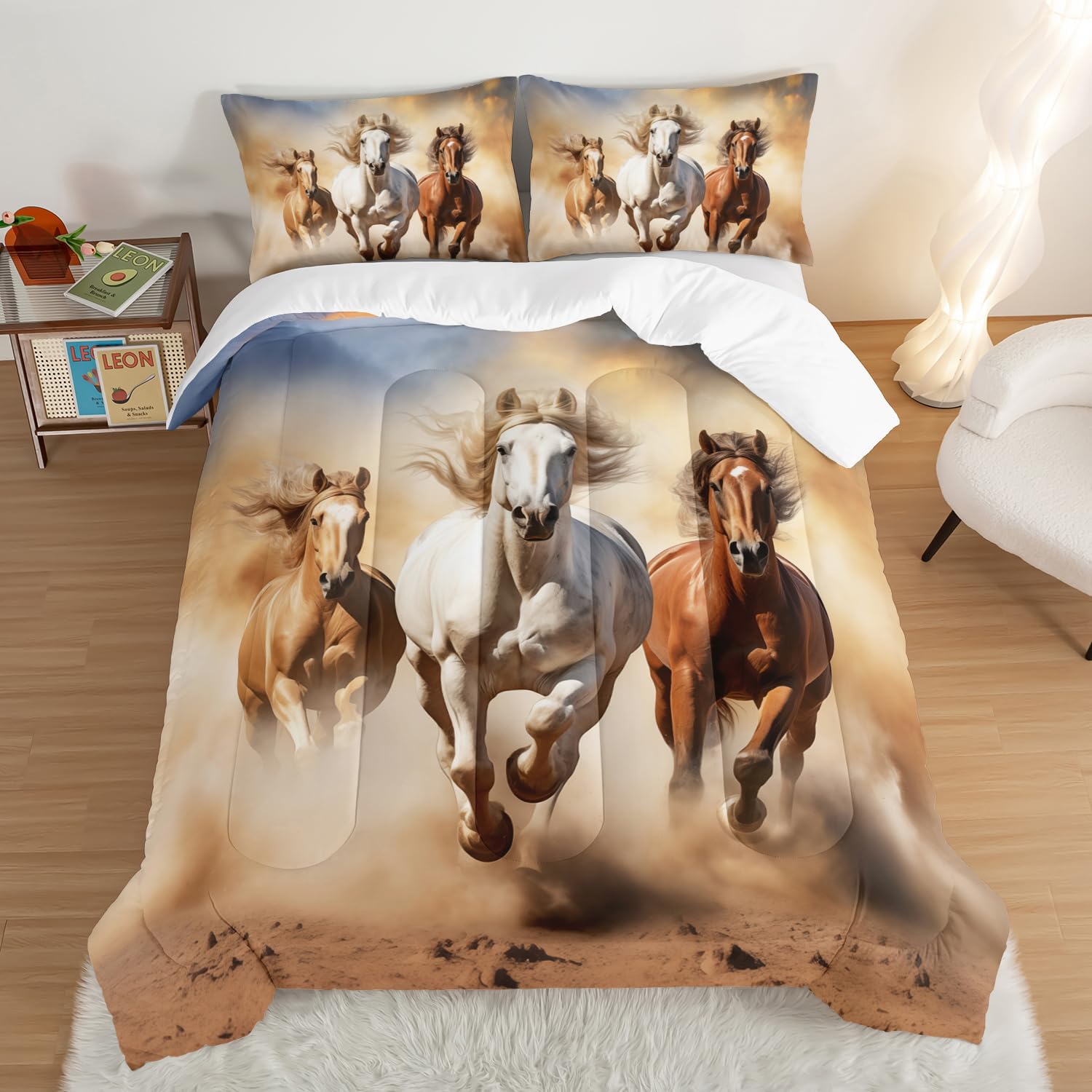 - 【Features】The comforter shows the pattern of three galloping horses galloping in the desert. They are handsome and unrestrained. It is suitable for various bedroom decoration styles to create a western cowboy-themed bedroom. This comforter is a good choice as a gift for your husband and son.