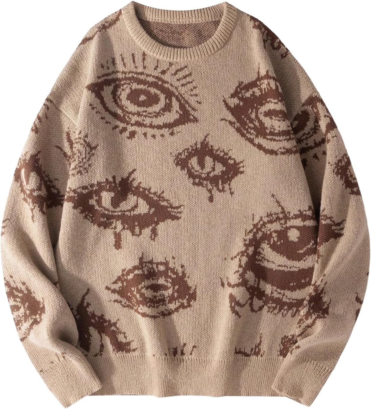 Men's Fall Goth Grunge Sweater Y2K Oversized Punk Sweater Halloween Graphic Long Sleeve Knit Pullover Streetwear