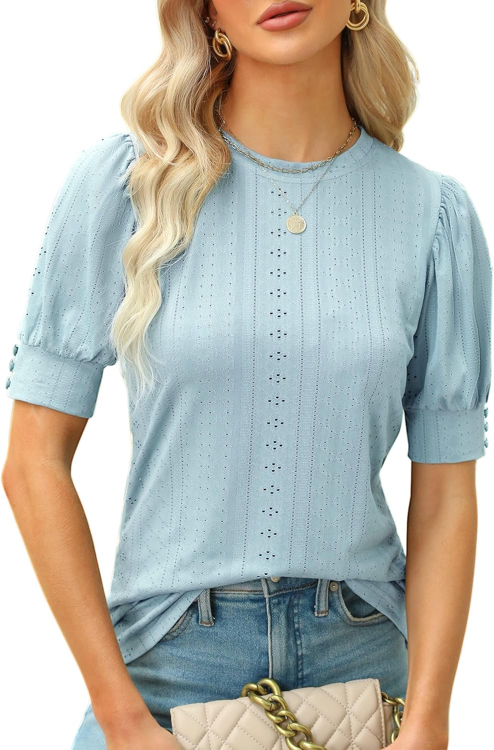 BMJL Womens Dressy Casual Blouses Business Tops Short Sleeve Shirts Work Tops Cute Puff Sleeve Blouses