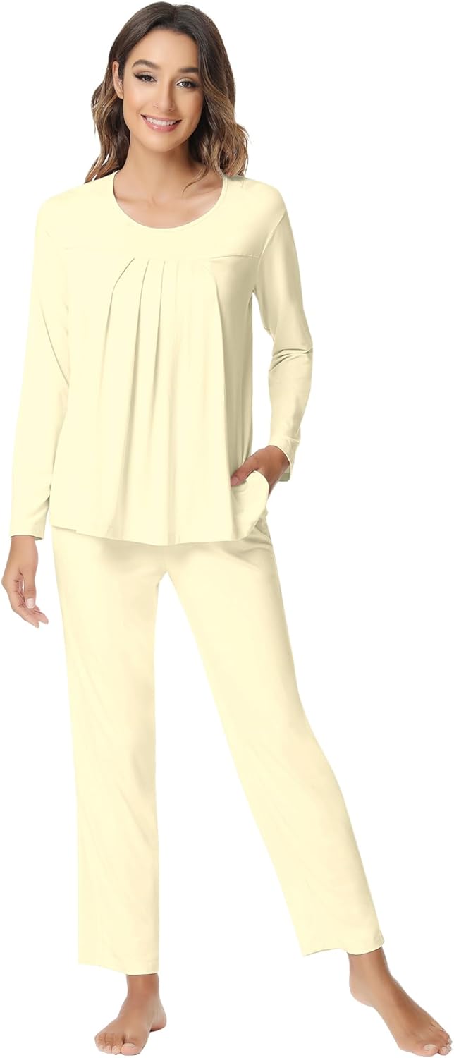 NACHILA Pajamas for Women-Viscose Made from Bamboo,Long Sleeve Pajama Sets Comfy Loungewear Pleated Pjs