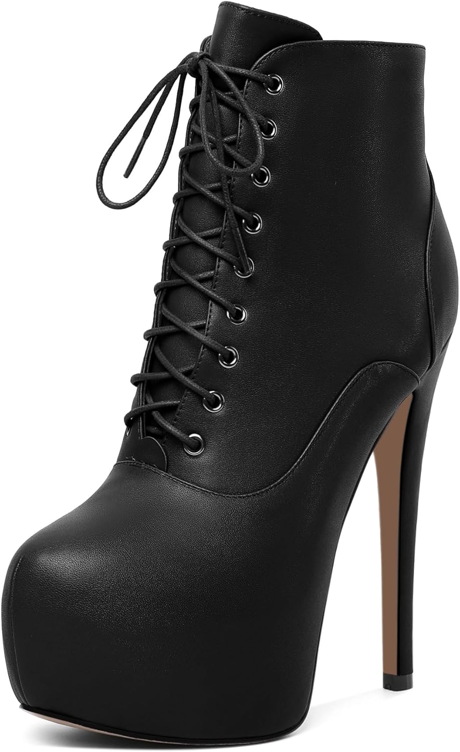 AUMOTED Women's Stripper Patform Heels Round Toe Combat Boots Stiletto High Heel Booties Sexy Fashion 6.3" Lace Up Zipper Short Boots