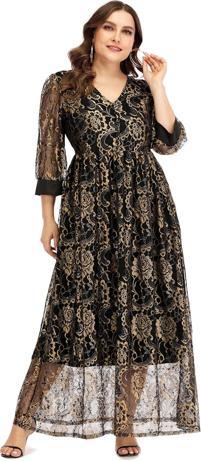 Women's Plus Size Guipure Lace Overlay Maxi Dress Empire Waist 3/4 Sleeve Evening Party Dresses Formal