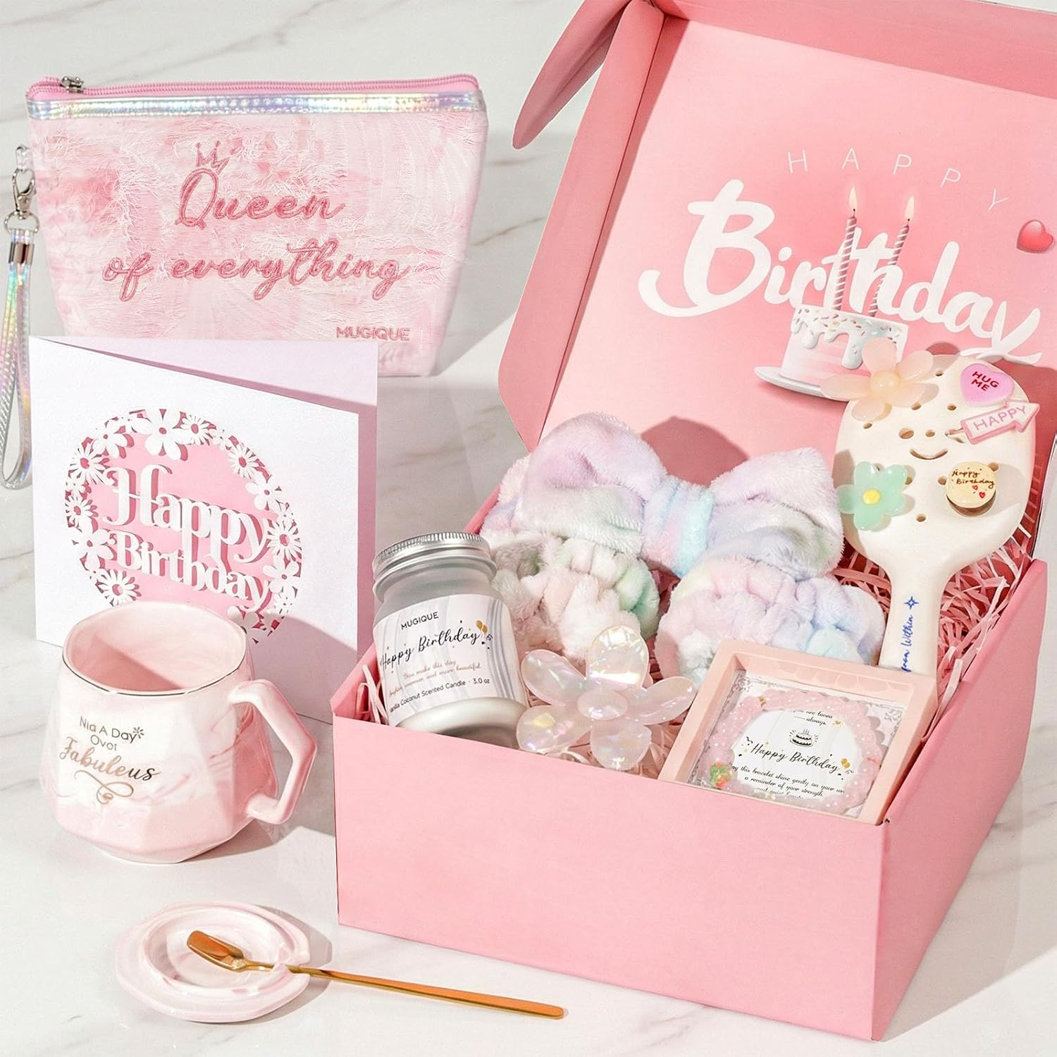Birthday Gifts for Women Unique, Happy Birthday Gift Box for Teenage Girl, Daughter, Best Friend, Sister, Relaxing Self Care Birthday Gift Basket for Her 16th 18th 20th 21st 25th, Pink