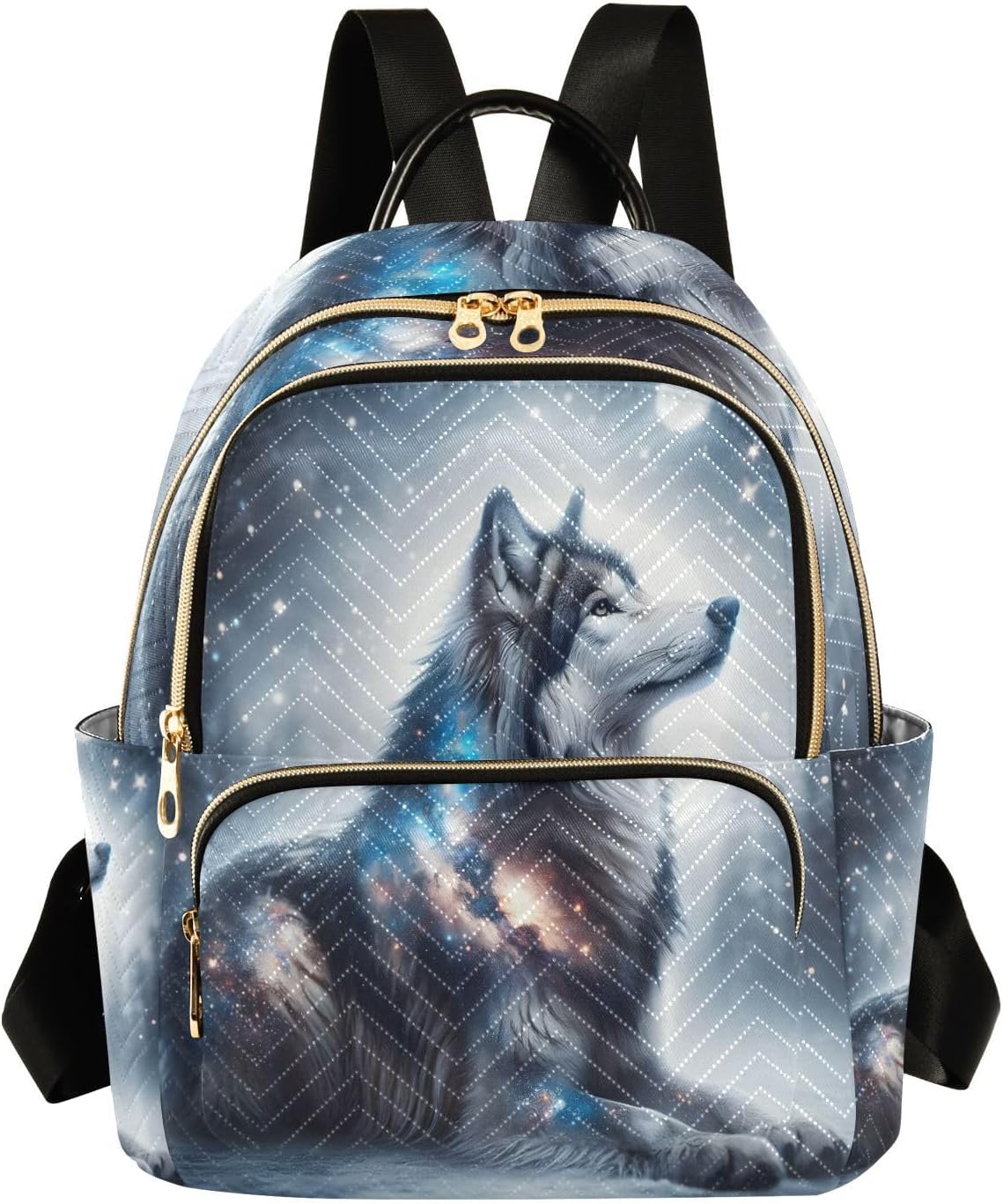 ALAZA Glitter Galaxy Wolf Small Backpack Purse for Women Travel Bag Lightweight Shoulder Bag Fashion Daypack