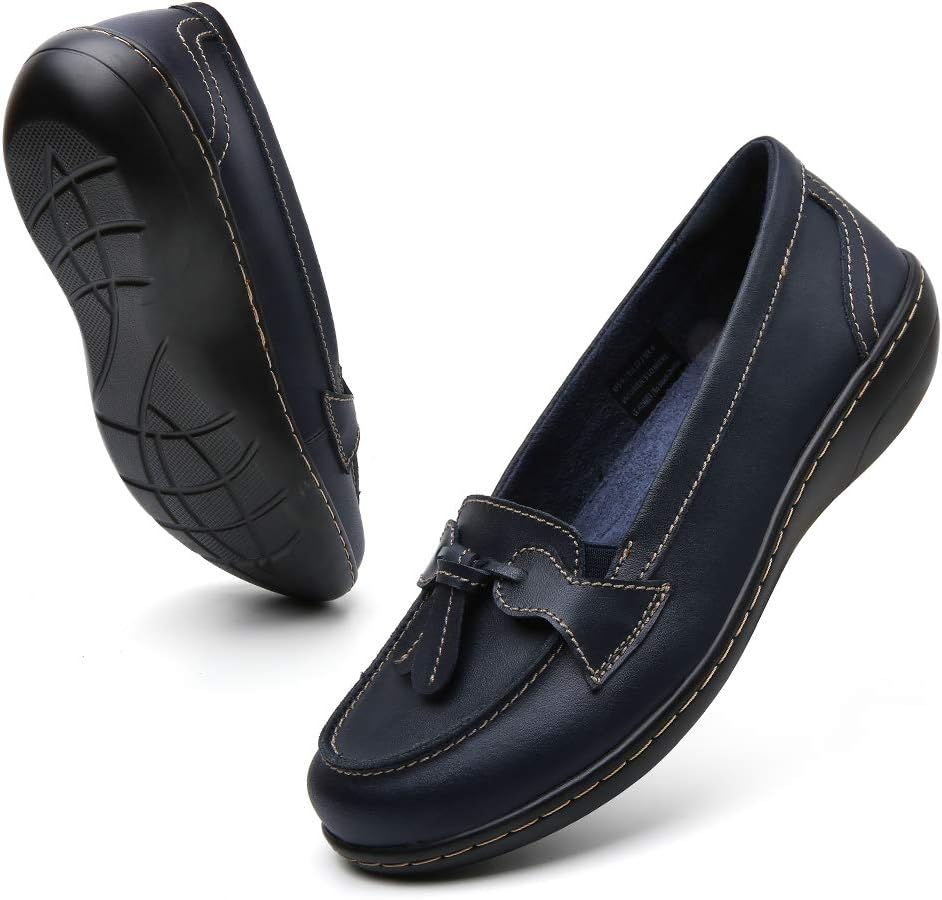 Maichal Loafers for Women Slip On Comfort Leather Tassel Dress Shoes