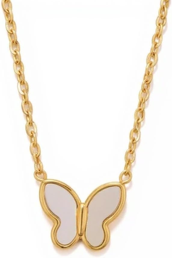 18K Yellow Gold Filled Butterfly Pendant Necklace with Cubic Zirconia for Women 18" – Non Tarnish, Hypoallergenic, Dainty Everyday Necklace, Gift for Her, Waterproof Stainless Steel Jewelry