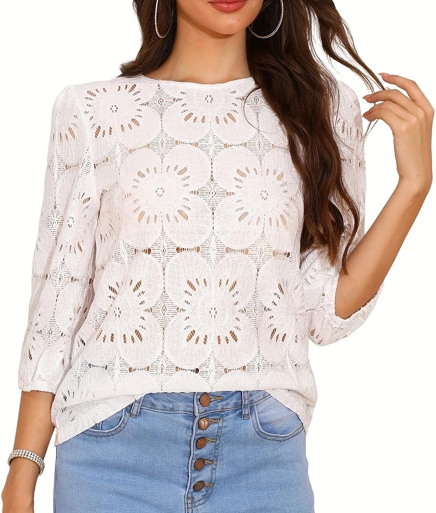 Boho Eyelet Lace Crochet Tops for Women Dressy Casual Summer Fall Fashion Lightweight Tops&Blouses