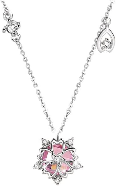 Sterling Silver Sparkling Cherry Blossom Pendant Necklace Sweet Pink Crystal Sakura Jewelry