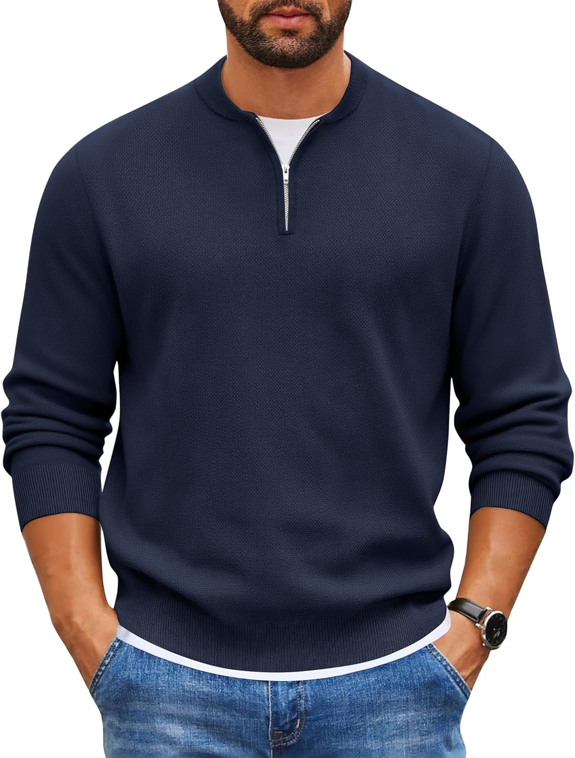 COOFANDY Mens Quarter Zip Pullover Slim Fit Knit Sweater Lightweight Mock Neck Casual Sweaters