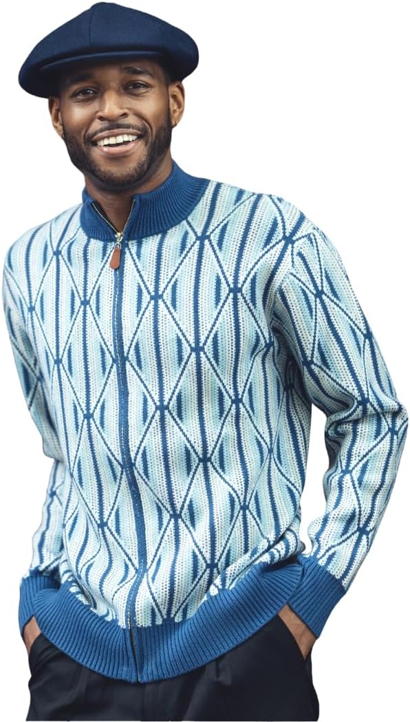 MONTIQUE Knit Blend Zip-Up Mens Sweater - Geometric Diamond Pattern, Ribbed Stand Collar & Full-Front Zipper | SW-105