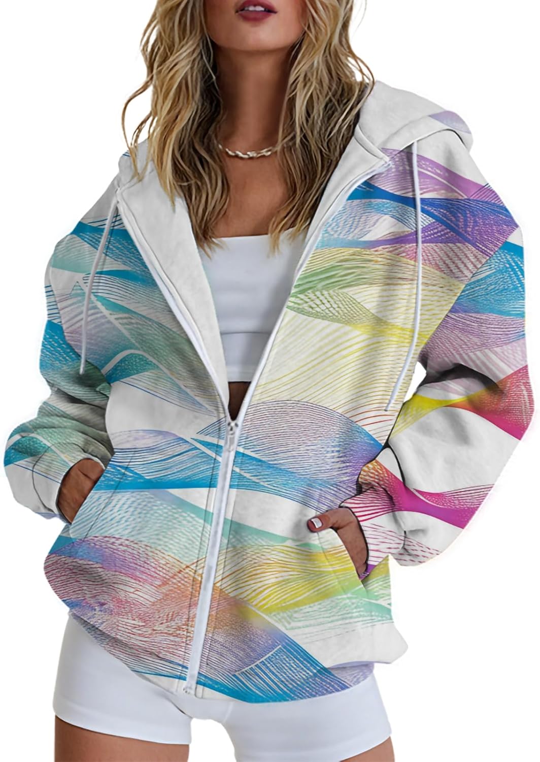 Hoodie Jacket Women Full Zip Up Long Sleeve Sweatshirts For Women 2025 With Pockets,Vibrant Casual Comfy Pullover