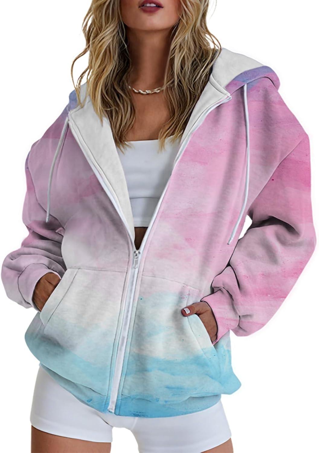 Hoodie Jacket Women Full Zip Up Long Sleeve Sweatshirts For Women 2025 With Pockets,Vibrant Casual Comfy Pullover