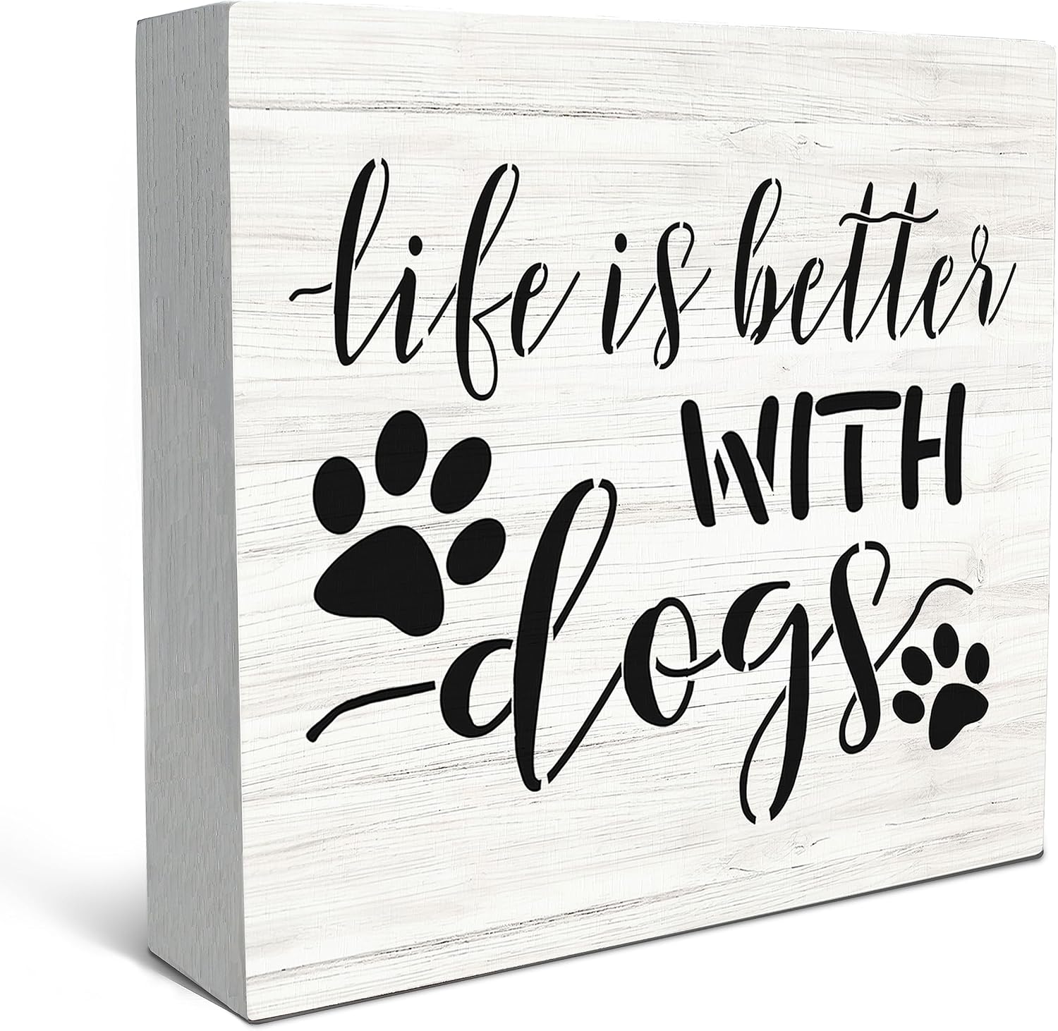 SRADMO Life Is Better with Dogs Wood Box Sign Desk Decor, Dog Lovers Saying Rustic Wooden Block Box Sign Decoration For Home Living Room Shelf Table Decor