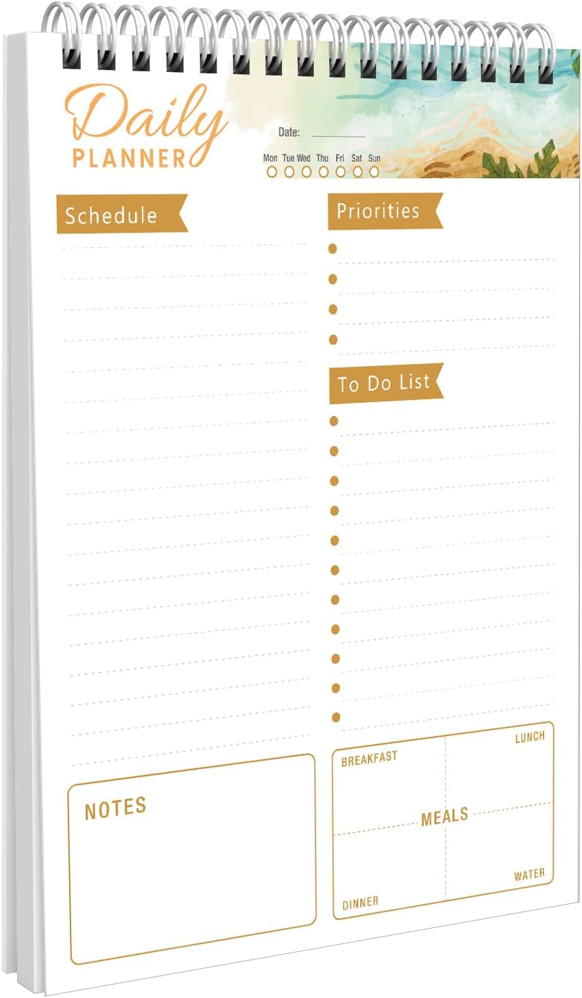 To Do List Notebook Daily Planner A5 CheckList Pad 52 Sheets, 5.9" x 8.2" Daily Schedule Goal and Tasks Setting Notepad Productivity Planner, Spiral Appointment Organizers, A5-KA