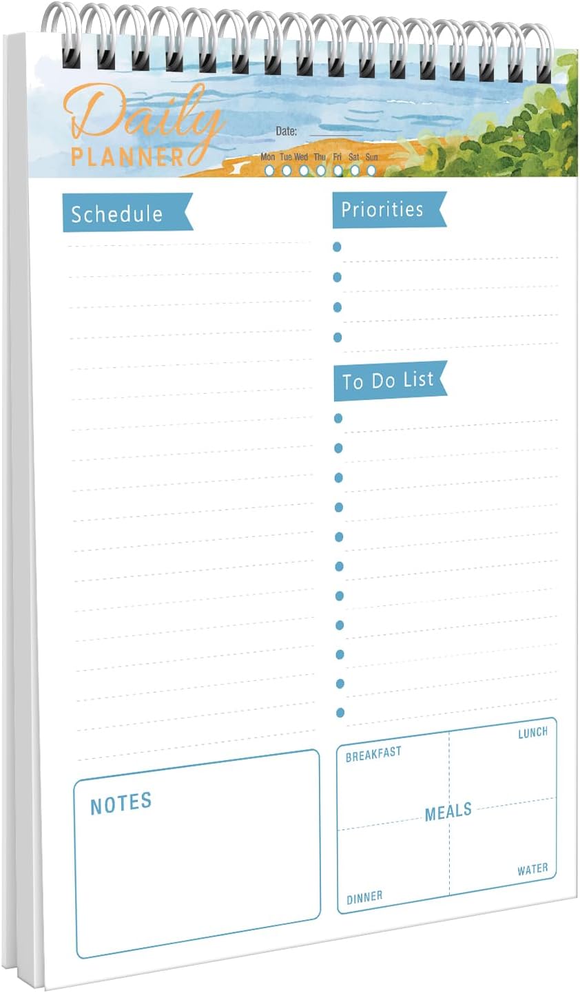 To Do List Notebook Daily Planner A5 CheckList Pad 52 Sheets, 5.9" x 8.2" Daily Schedule Goal and Tasks Setting Notepad Productivity Planner, Spiral Appointment Organizers, A5-LB
