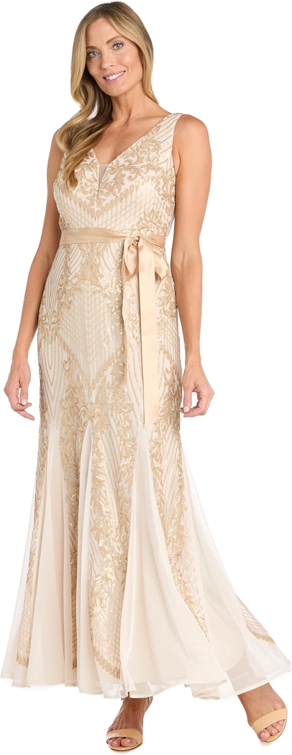 R&M Richards Women's Nude Soirée Gown