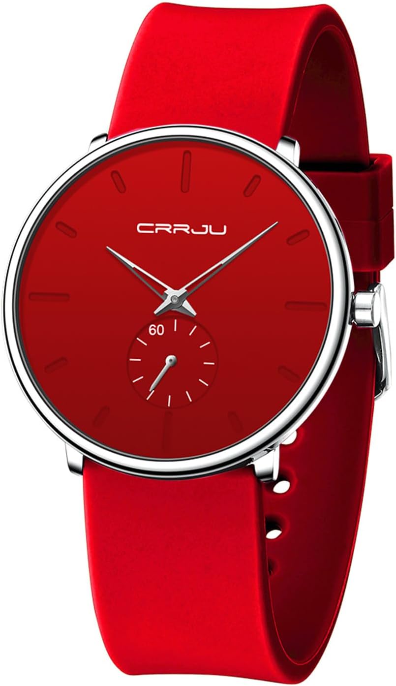 CRRJU Men’s Women Watch Casual Stylish Waterproof Quartz Unisex Wristwatches, Ultra Thin Watches for Men Women, Colorful Silicone Band