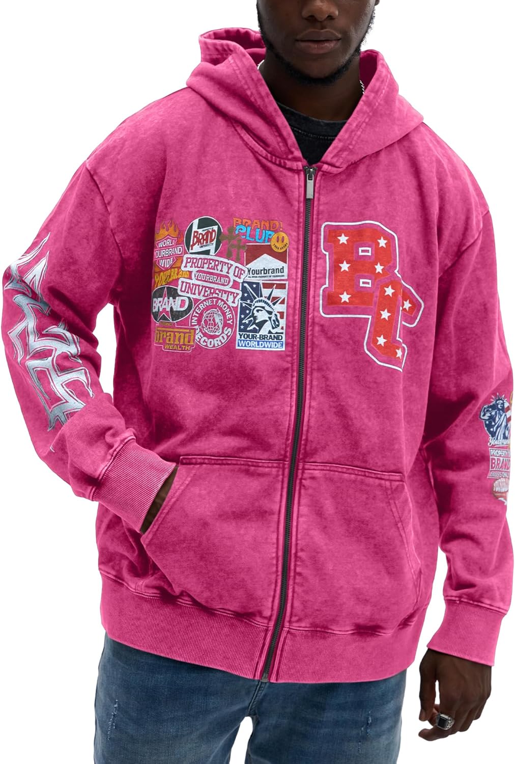 Men's Zip Up Hoodie, Vintage Graphic Long Sleeve Sweatshirt with Pockets Oversized Wash Old Jackets Unisex