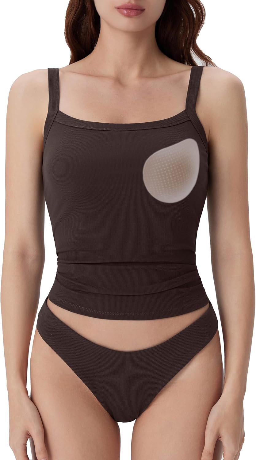 SUUKSESS Women Cotton Rib Padded Tank Tops Sleeveless Spaghetti Strap Square Neck Tops Summer Camisole Going Out Shirts