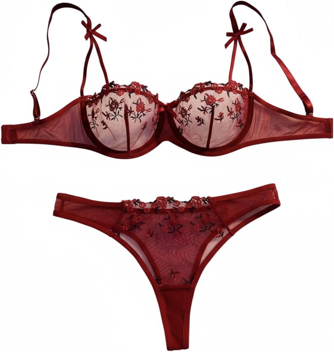 Milumia Women's 2 Piece Lingerie Sets Floral Embroidery Mesh Underwire Bra and Panty Set Underwear