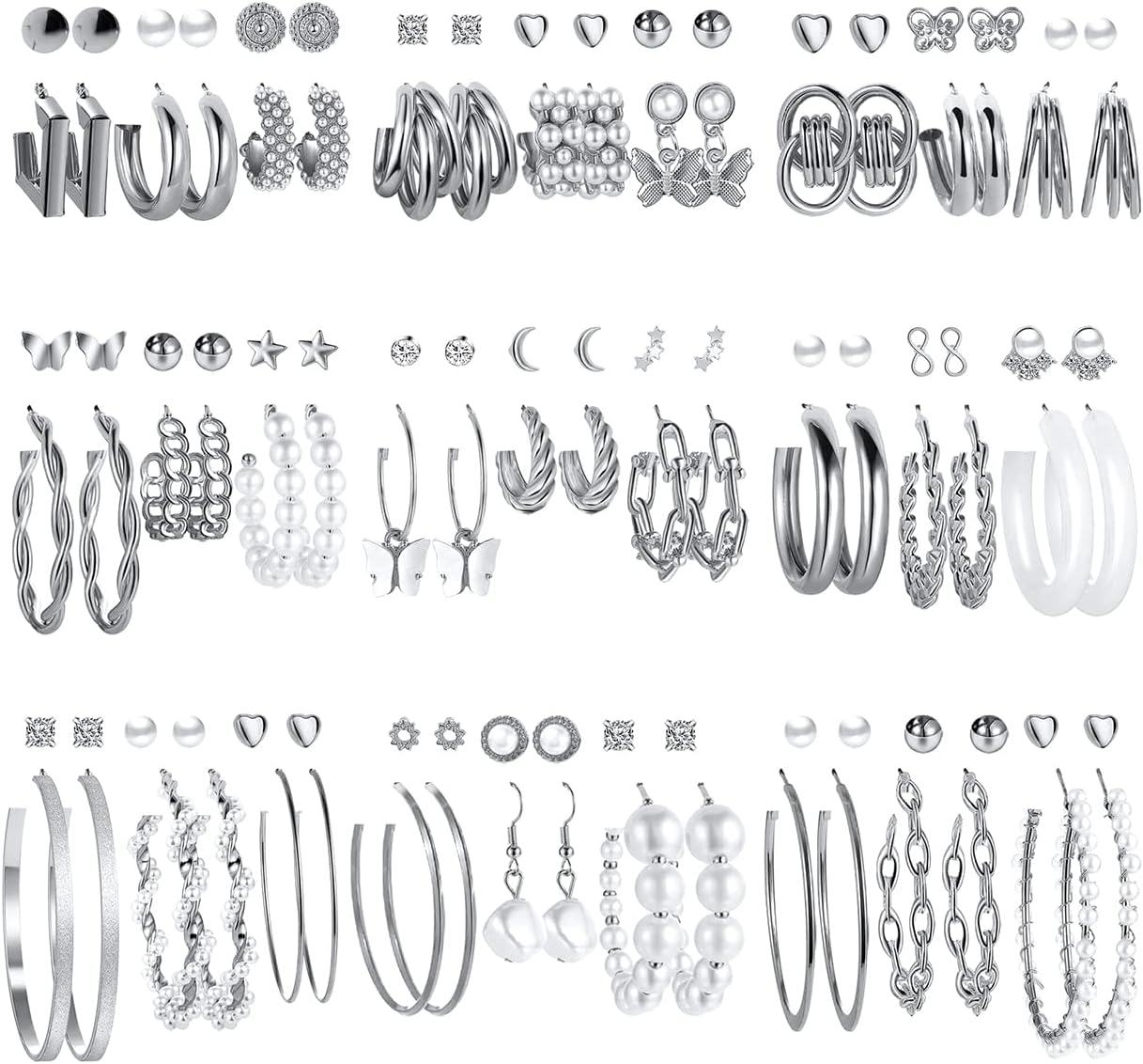54 Pairs Gold Hoop Earrings Set for Women Multipack, Boho Fashion Statement Stud Hoop Earring Pack Butterfly Shaped Assorted Small Big Earrings for Jewelry