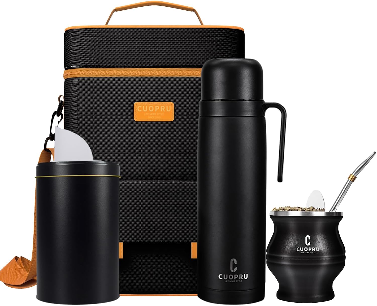 - 1000ML STAINLESS STEEL MATE THERMOS: Double-walled thermos with push-button lid, engraved CUOPRU, and insulation that keeps water hot and cold up to 12-24 hours, allowing you to enjoy yerba mate anytime with this mate set.