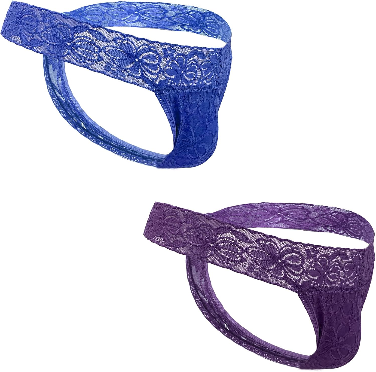 Sexy Men Lace Thongs Comfortable Soft Lace T Back Thong Underwear Wide Waistband 2 Pack Size S-4XL