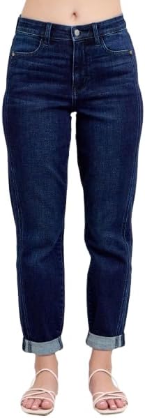 Judy Blue High Waist Boyfriend Jeans for Women | Stretchy Relaxed Fit Denim | Cuffed & Uncuffed Options – 82646