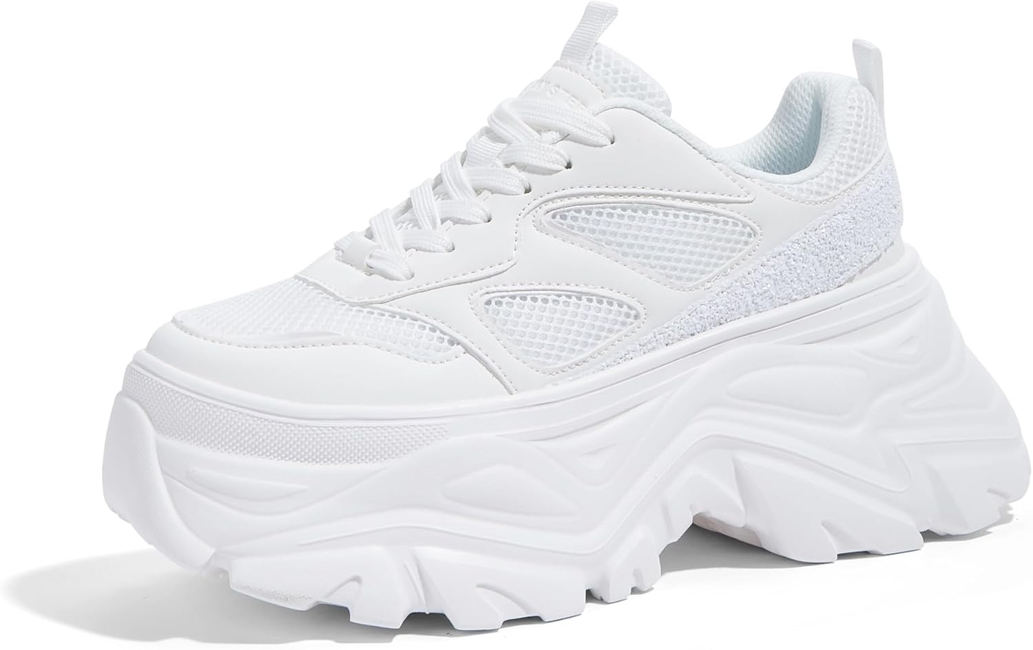 LUCKY STEP Women's Rhinestone Chunky Sneakers Breathable Lace-Up Platform Walking Sneakers Fashion Casual Dad Shoes