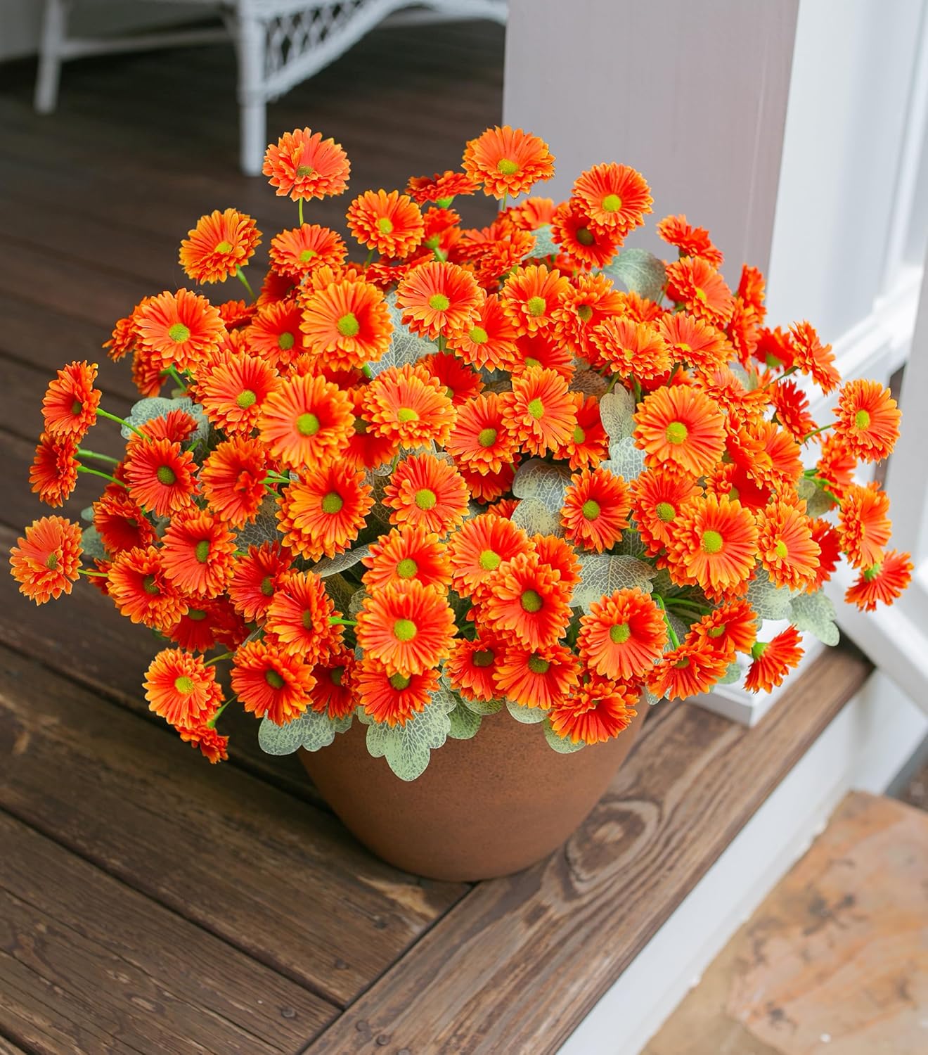 - Variety of Uses: Artificial flowers for outdoors are perfect for planter, pot, home, patio, arches, aisle, flower basket, front door, windows, gardens, yard, balcony, porch and great for outdoor decoration. Baby shower, wedding ceremony, party, office or home decoration, reception centerpieces, or everyday, it is also a perfect gift for your friends.