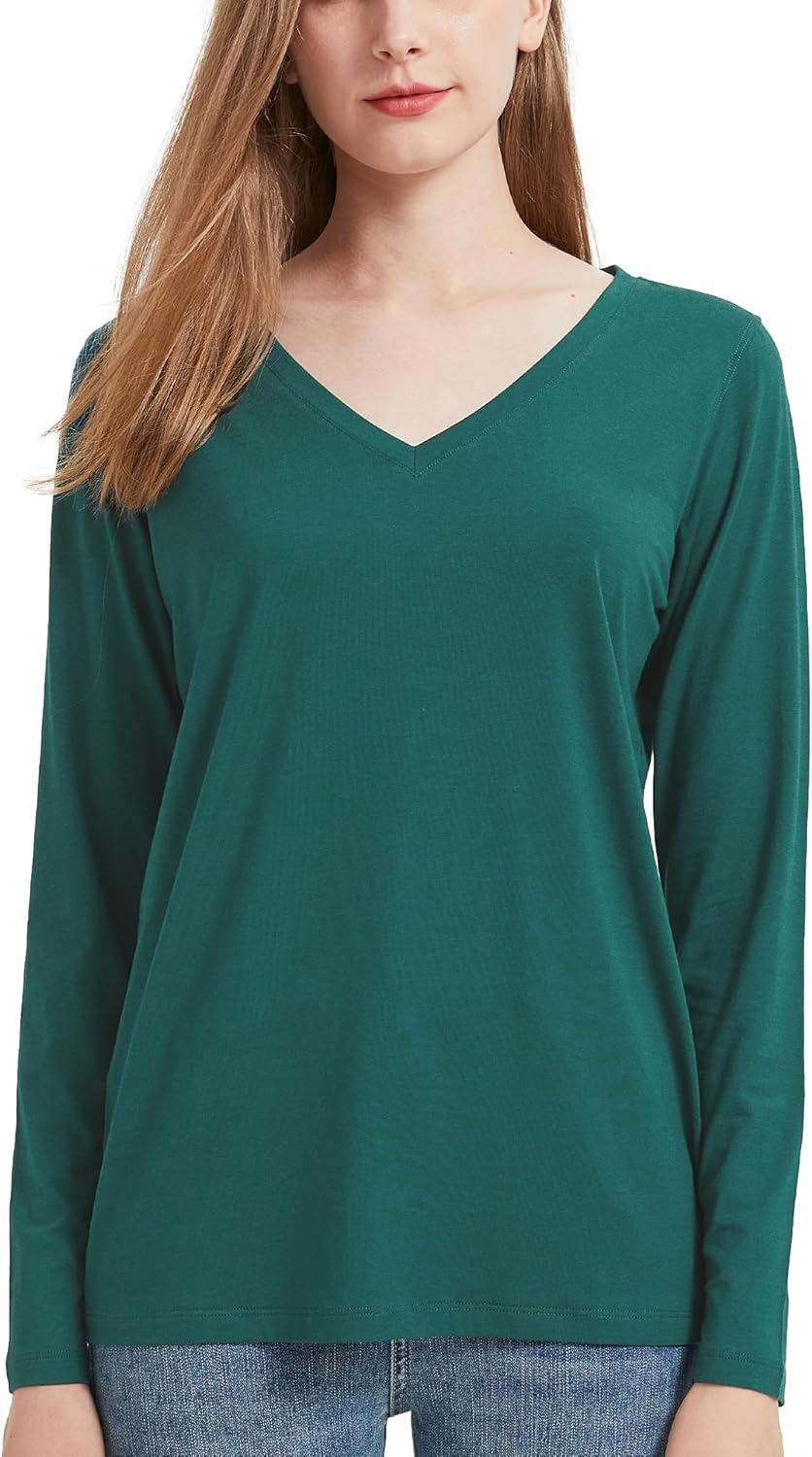 netdraw Women's Bamboo Viscose Long Sleeve V-Neck T-Shirt Soft Comfy Trendy Casual Sleep Pajama Lounge Tops