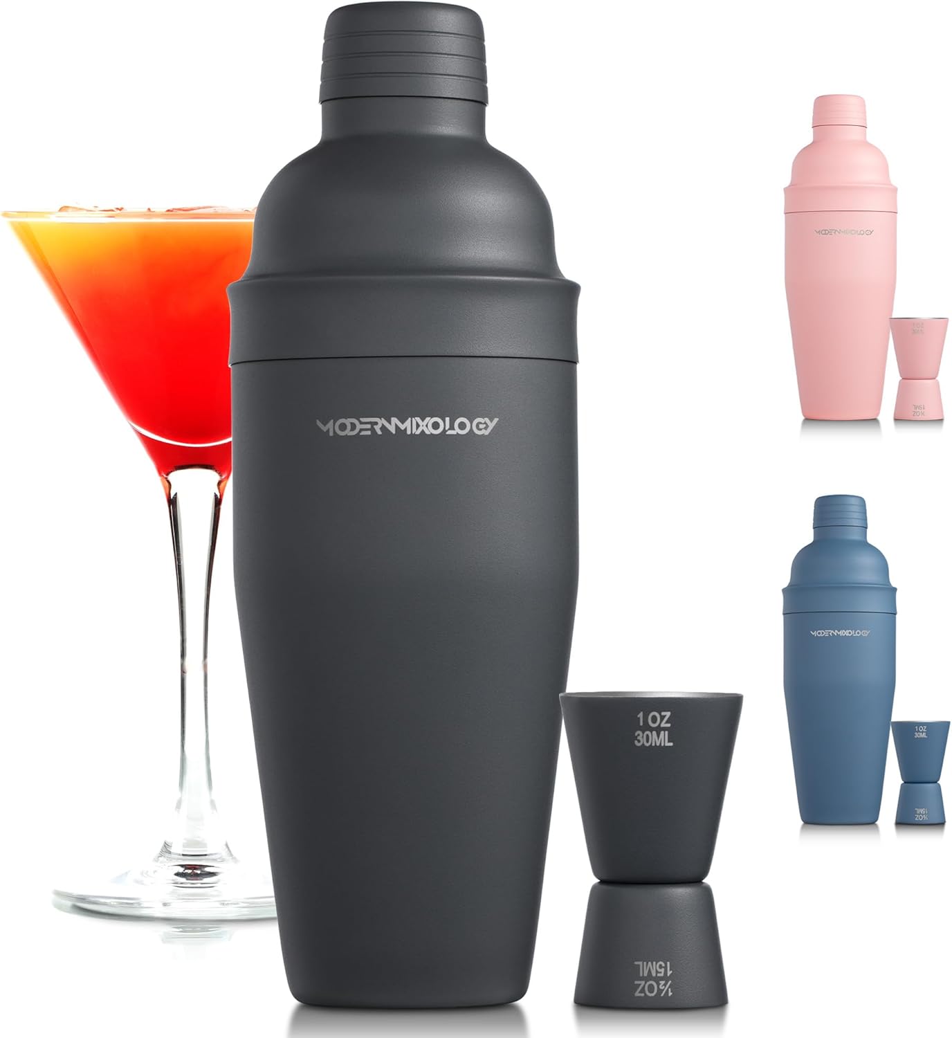 - Complete 3-Piece Set – Includes a 24oz matte dark grey cocktail shaker with built-in strainer, cap, and double-sided jigger for accurate pours. Everything you need to start mixing!