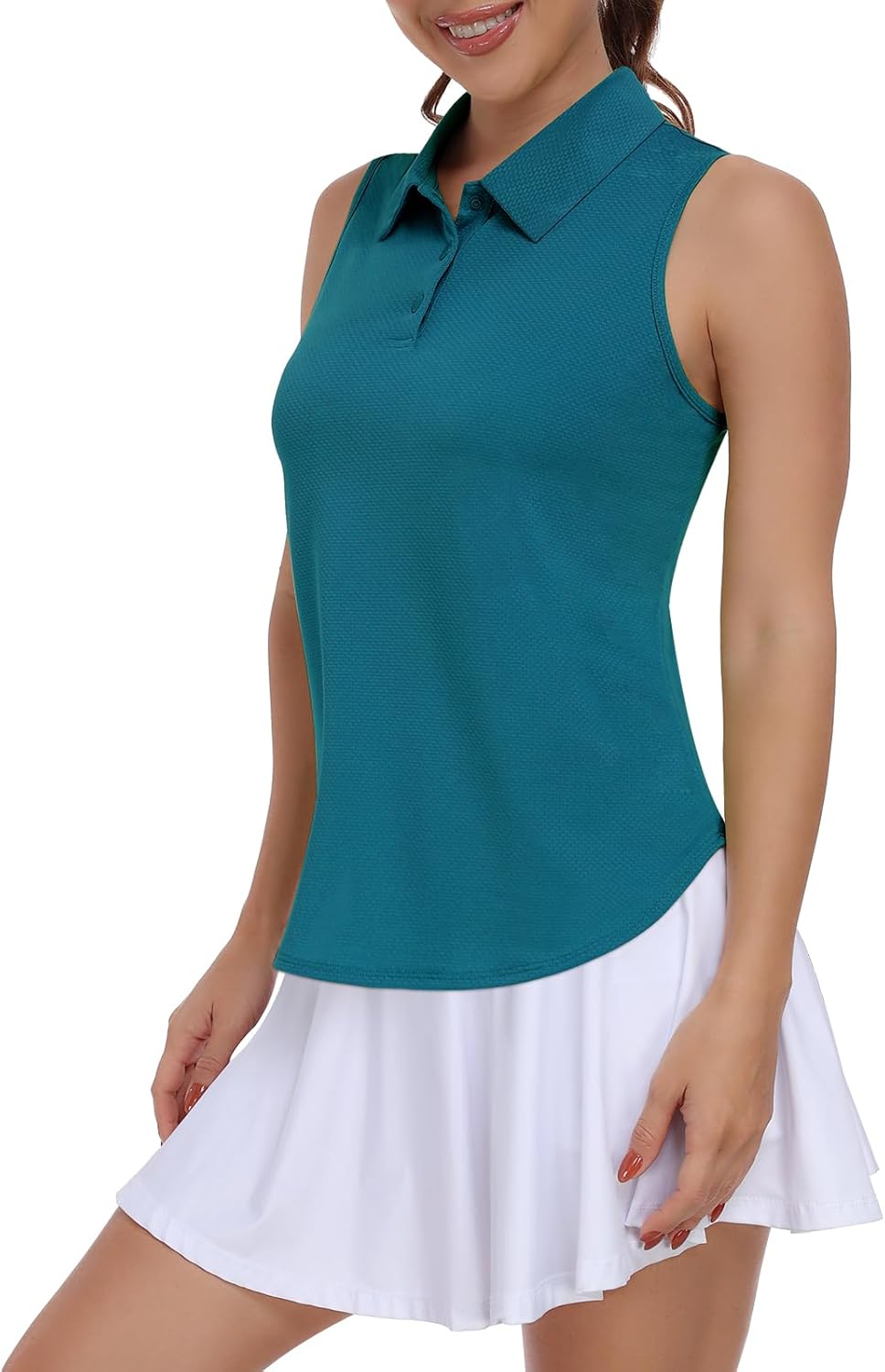 Women Golf Shirt UPF 50+ Tennis Sleeveless Collared Polo Shirt Dry Fit Racerback Workout Tank Tops