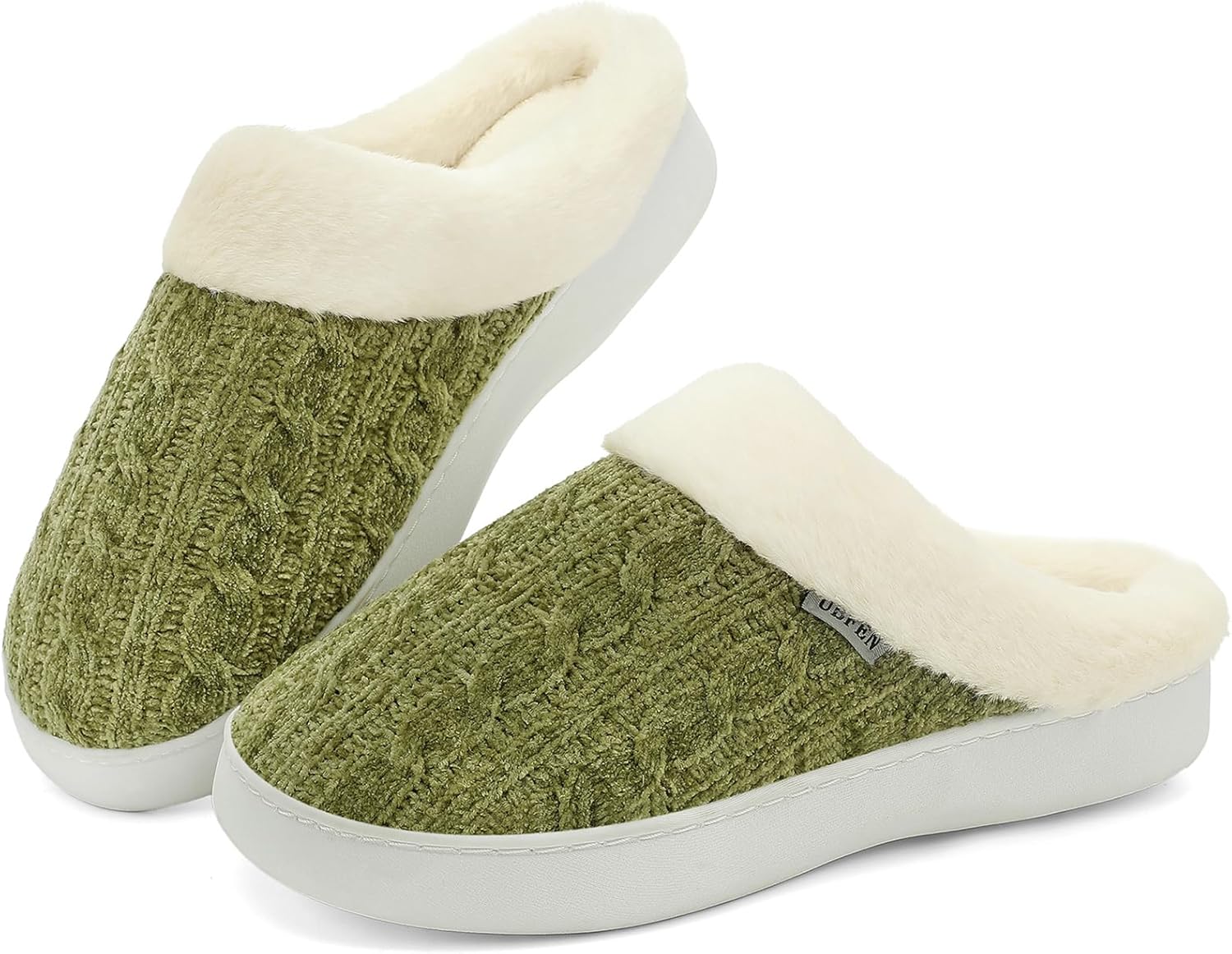 UBFEN Mens Womens Slippers Classic Plaid Winter Warm with Memory Foam Fluffy House Shoes Platform Indoor Bedroom