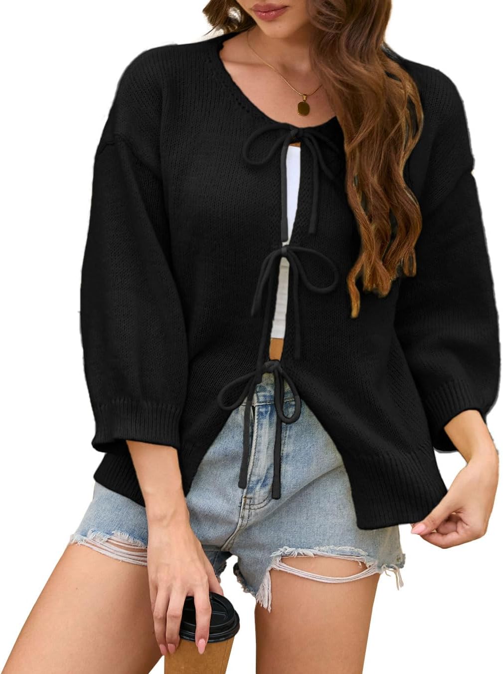 Women's 3/4 Sleeve Lightweight Fashion Cardigan Sweater