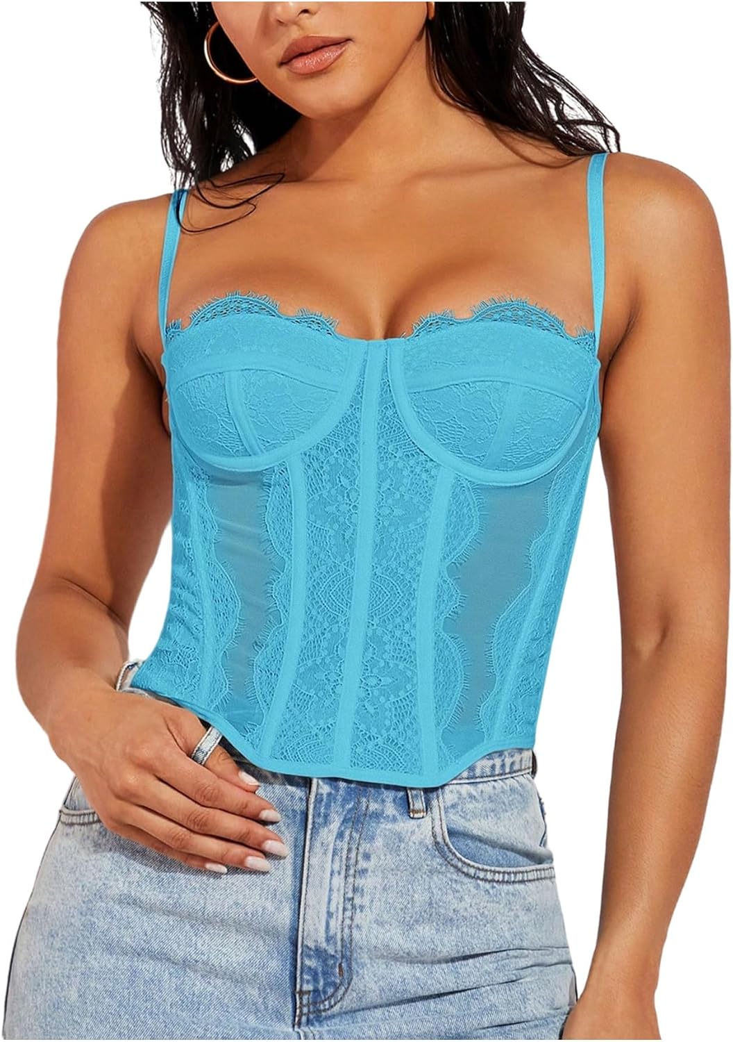 Verdusa Women's Rave Lace Corset Bustier Tops Y2K Sleeveless Cropped Camisole Top Party Outfits