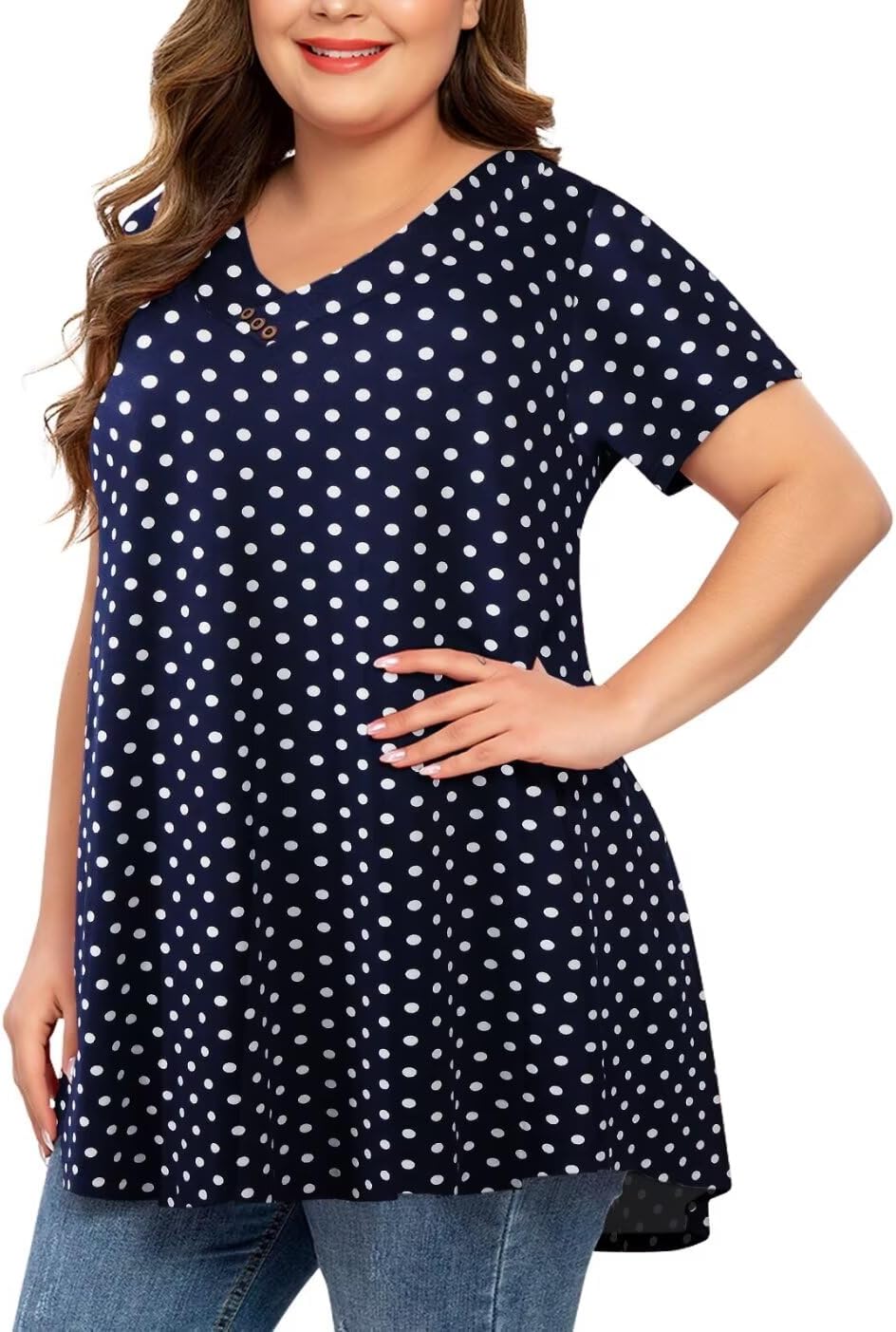 MONNURO Womens Plus Size Tops Short Sleeve Button Down Basic Tunics Summer Swing T Shirts Casual V Neck Blouses for Leggings