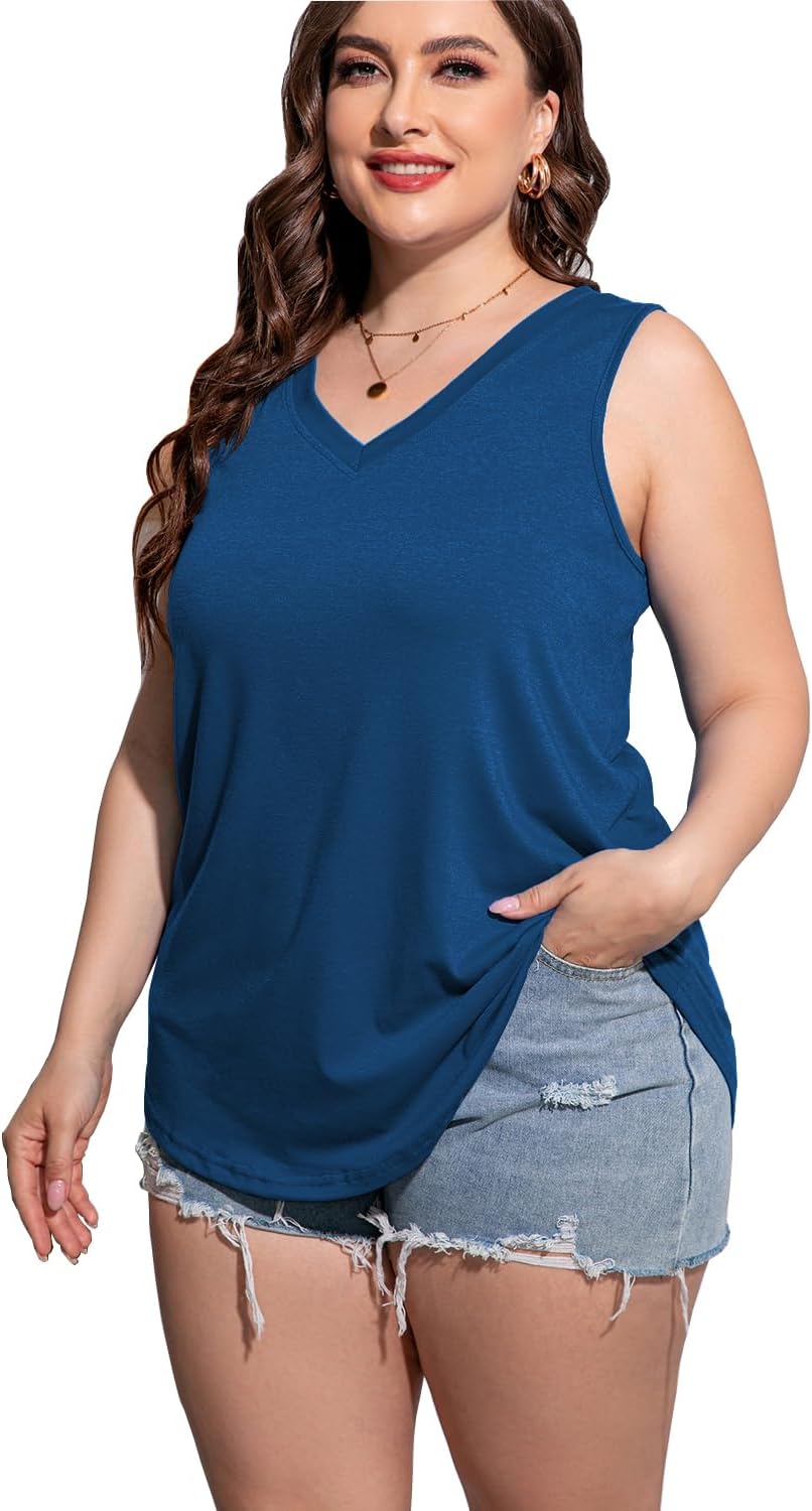 Plus Size Sleeveless Tops Women Casual Summer Sleeveless Loose Fit V Neck Ladies Basic Tshirt