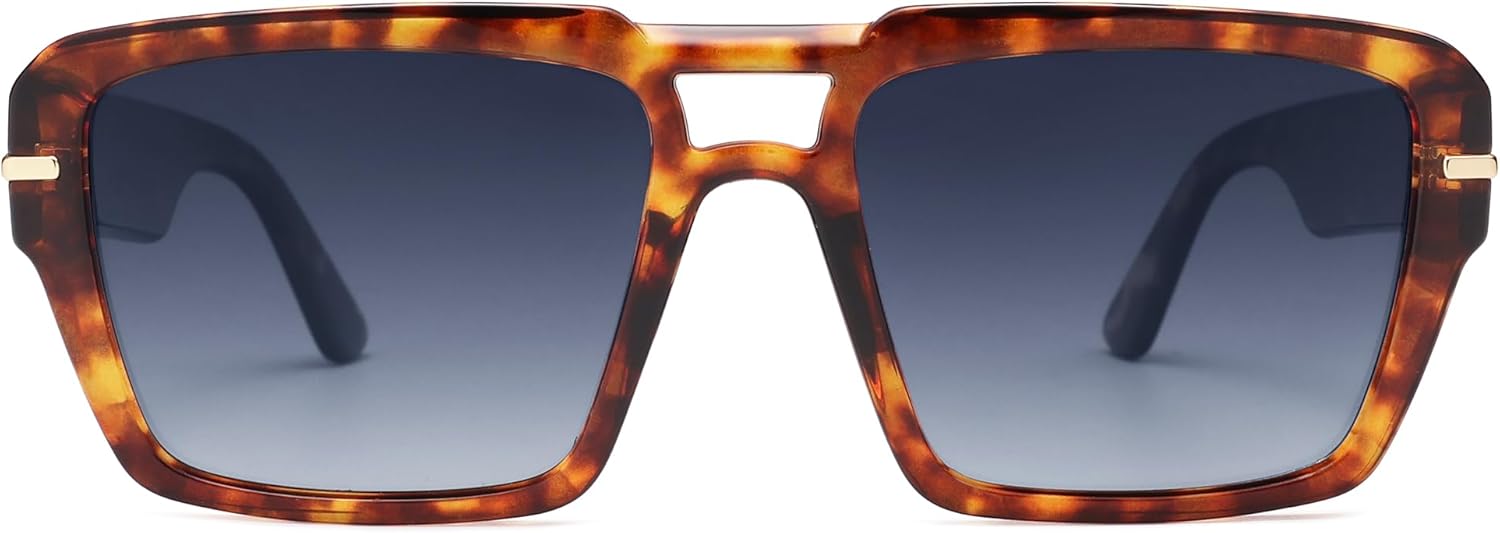VANLINKER Polarized Trendy Square Double Bridge Aviator Sunglasses for Women Men Retro Vintage Shades VL9835
