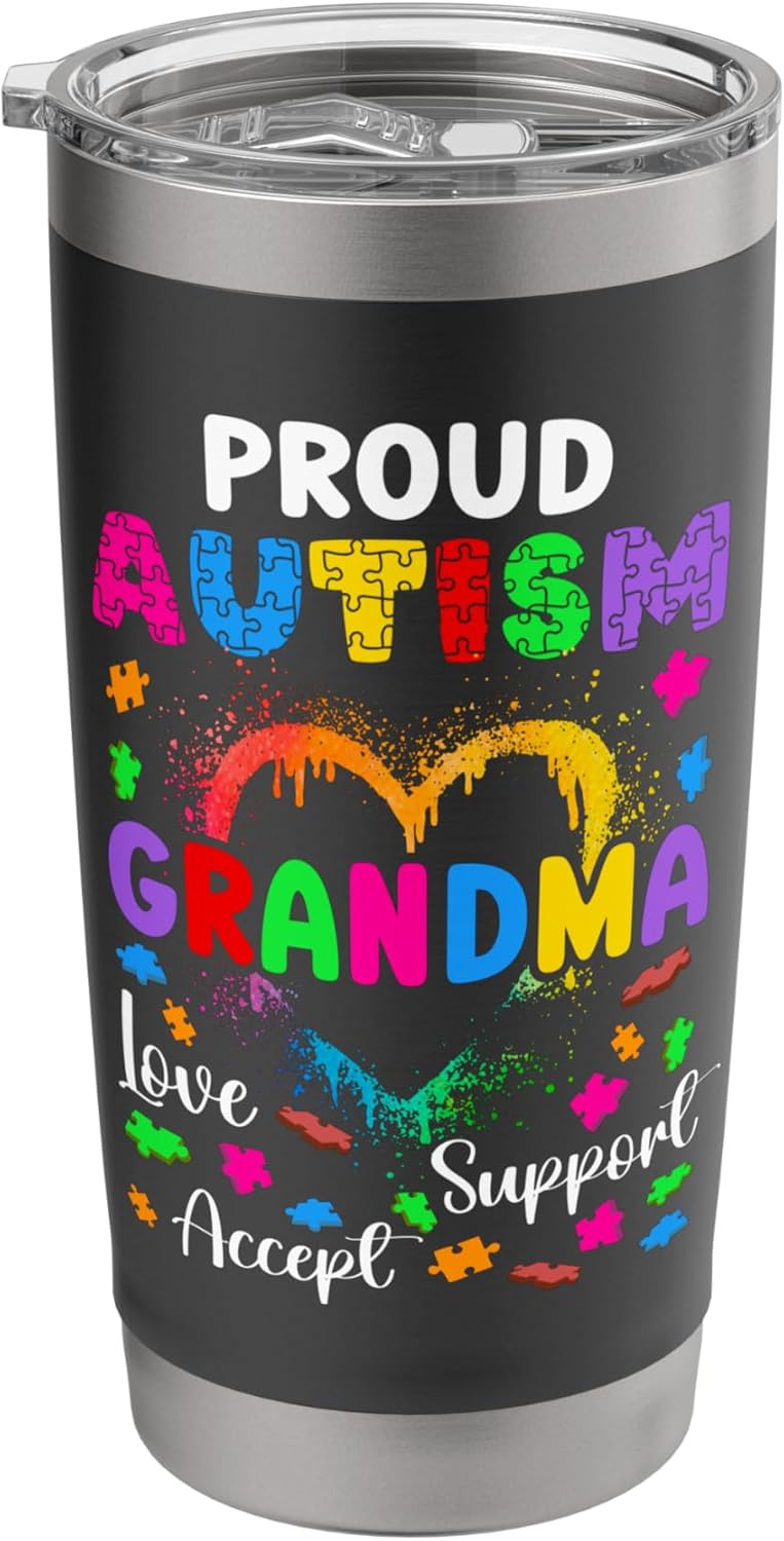 Proud Autism Grandma Love Support Autism Warrior Grandma Stainless Steel Insulated Tumbler