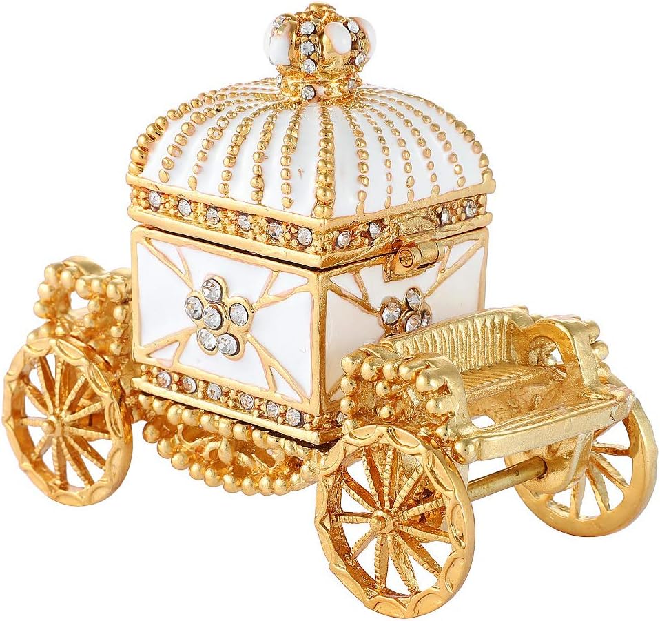 QIFU Enameled Royal Carriage Style Trinket Box Hinged, Unique Gift for Family
