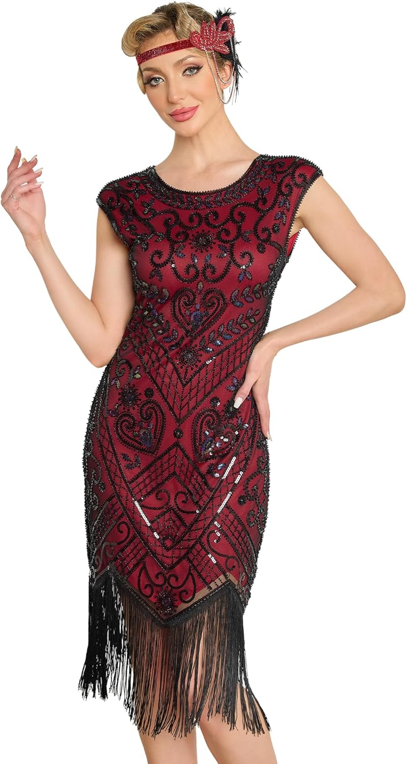 1920s Flapper Dresses for Women Great Gatsby Dress Roaring 20s Costumes Sequin Harlem Nights Dress