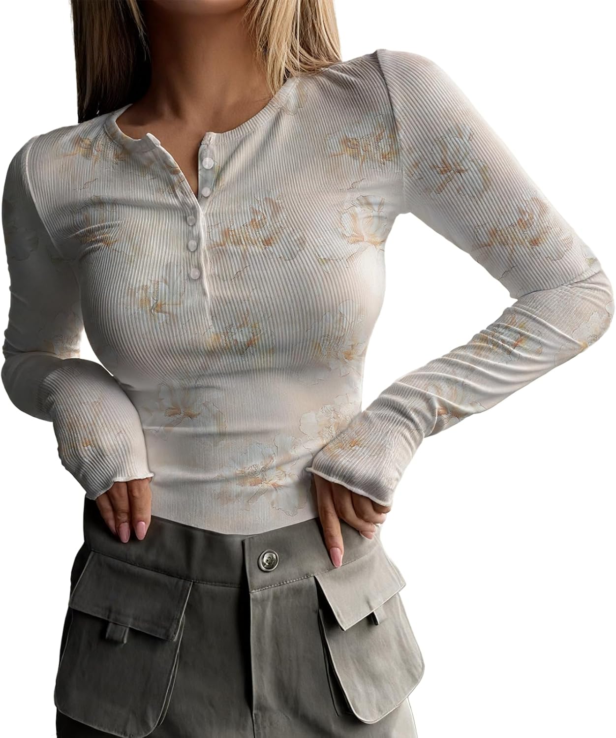 Vintage Womens Long-Sleeved Half Button T Shirts Casual Tshirt Crewneck Fitted Tee Long Sleeve Oversized Tops Women