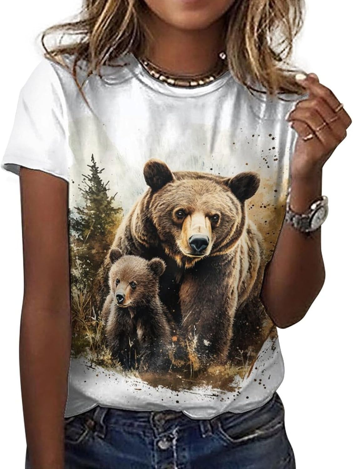 Mothers Day Shirt Animals Print Funny Casual Soft Comfy Short Sleeve Cotton Oversized Mama Daughter Matching Shirts