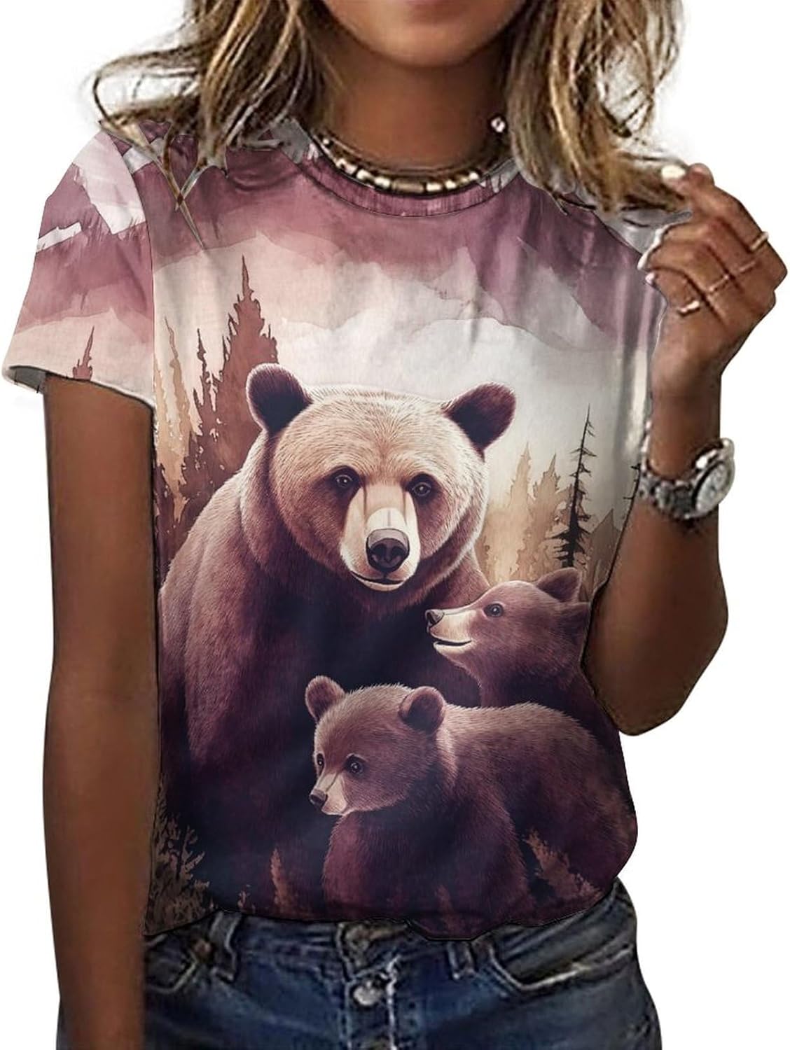 Mothers Day Shirt Animals Print Funny Casual Soft Comfy Short Sleeve Cotton Oversized Mama Daughter Matching Shirts