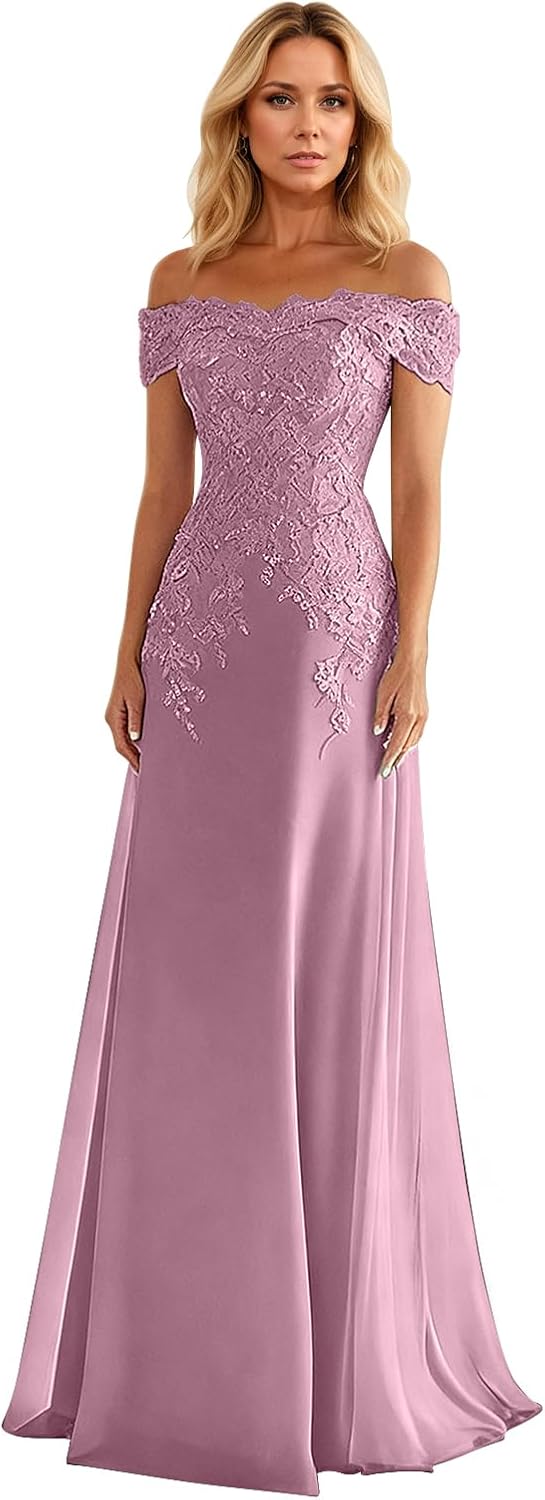 MiwiNovia Chiffon Mother of The Bride Dresses Long Lace Appliques Off The Shoulder Formal Evening Gown