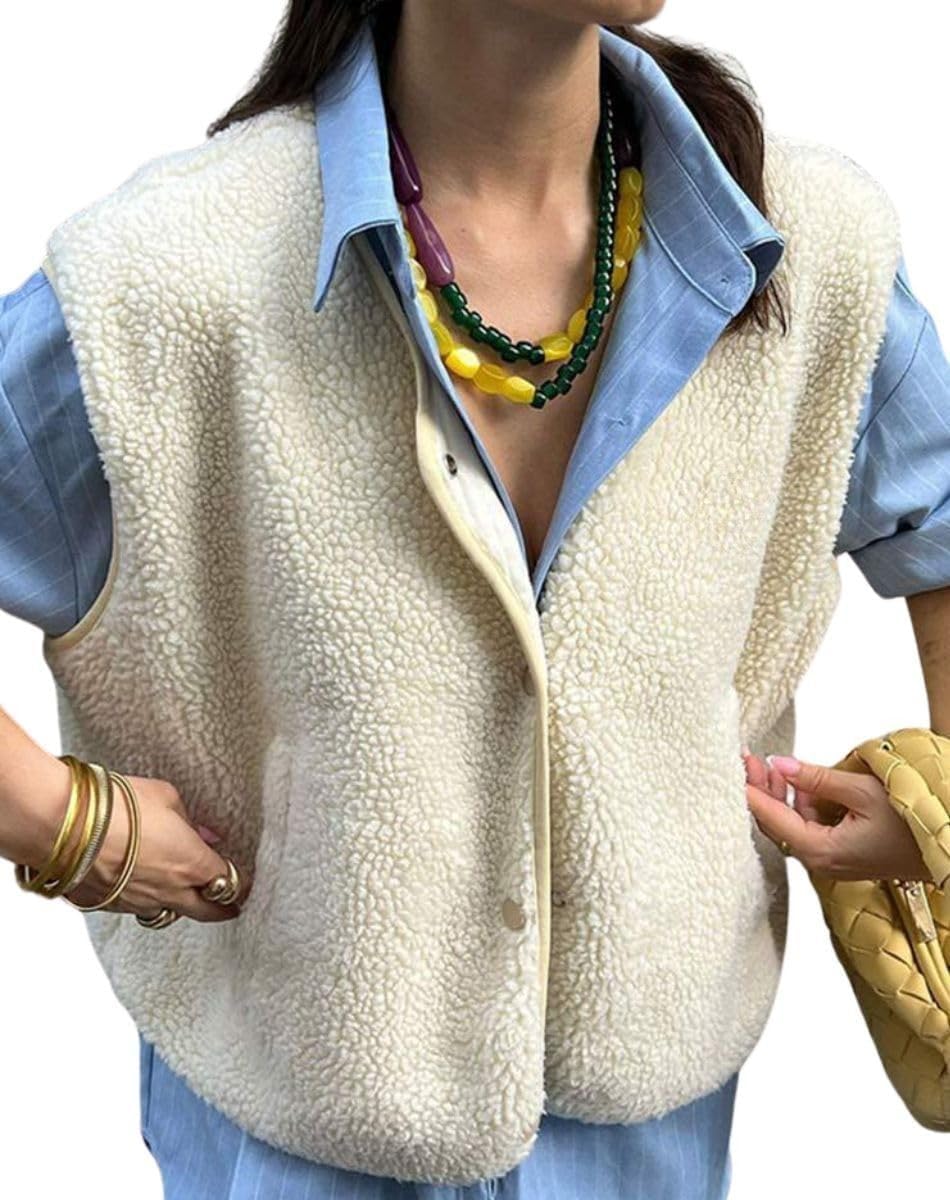 colarat Women's Sherpa Fleece Vest Sleeveless Button Down Fuzzy Faux Shearling Jackets Gilet Outwear with Pockets