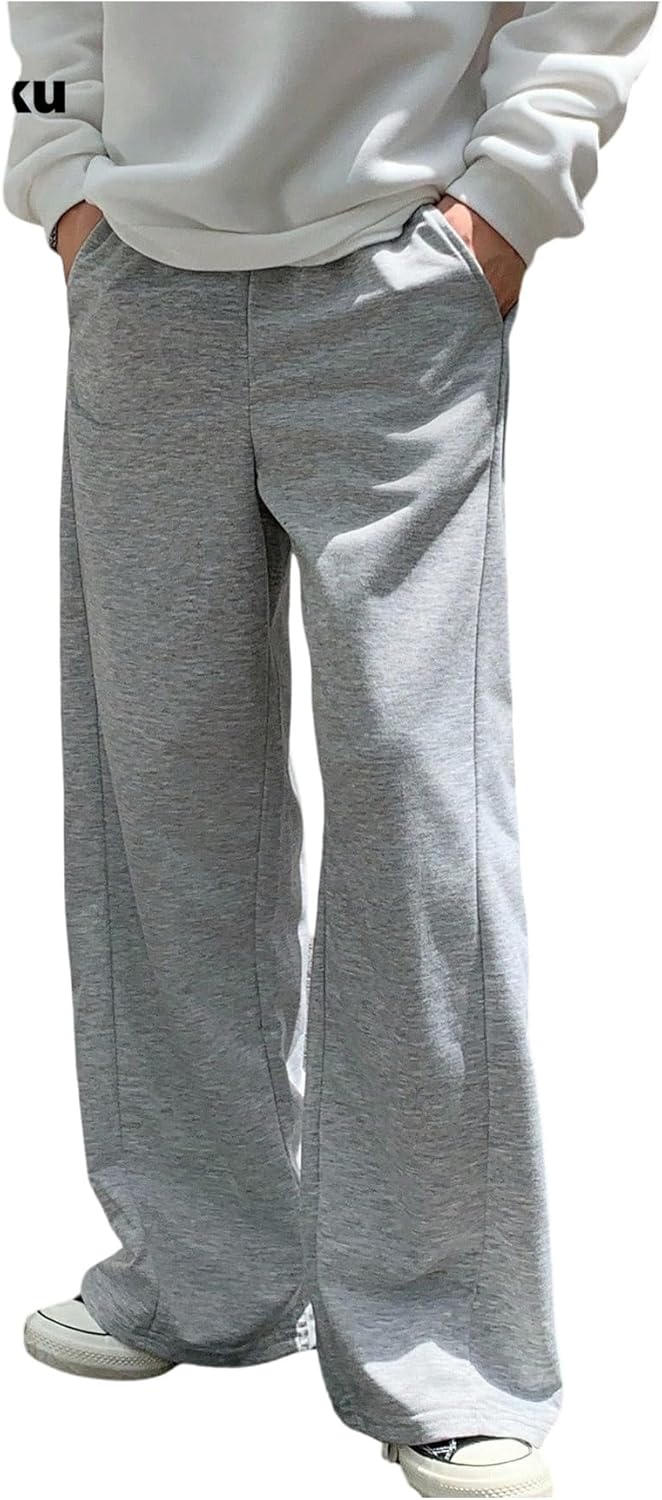 Boy's Wide Leg Sweatpants Elastic Waist Casual Pants Baggy Athletic Trousers with Pockets