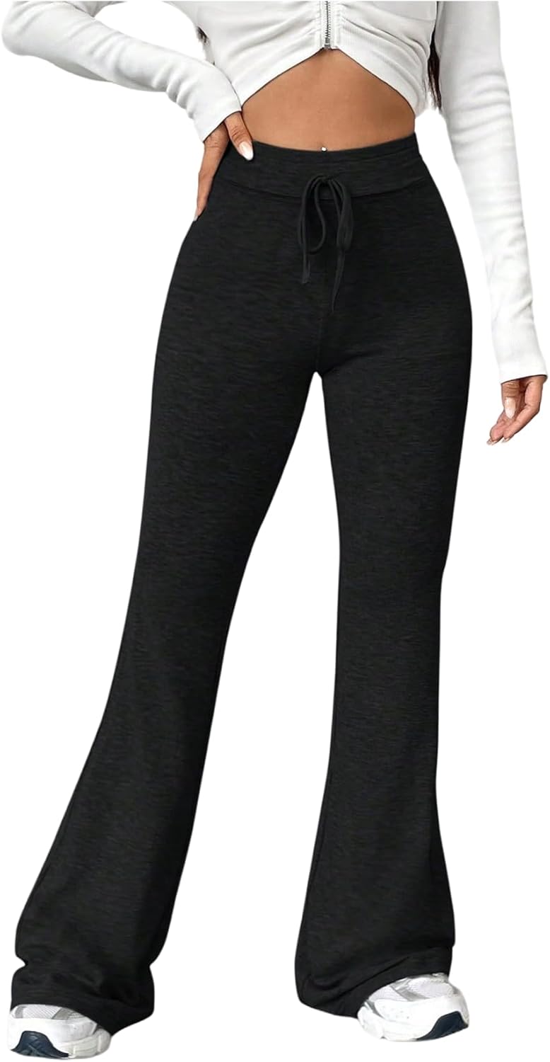 SHENHE Women's Flare Sweatpants Y2K Low Rise High Waisted Drawstring Fitted Workout Bootcut Sweatpants