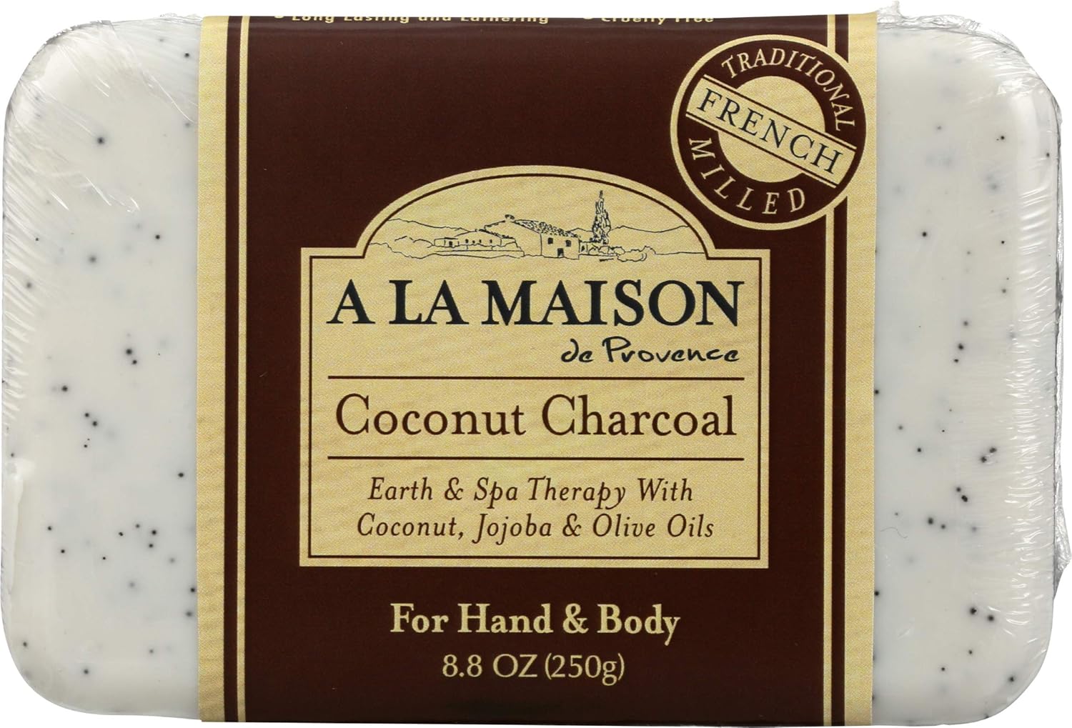 A LA MAISON Coconut Charcoal Bar Soap - Uses: Hand and Body, Triple Milled, Essential Oils, Biodegradable, Plant Based, Vegan, Cruelty-Free, Alcohol & Paraben Free (1 Bar of Soap, 8.8 oz)